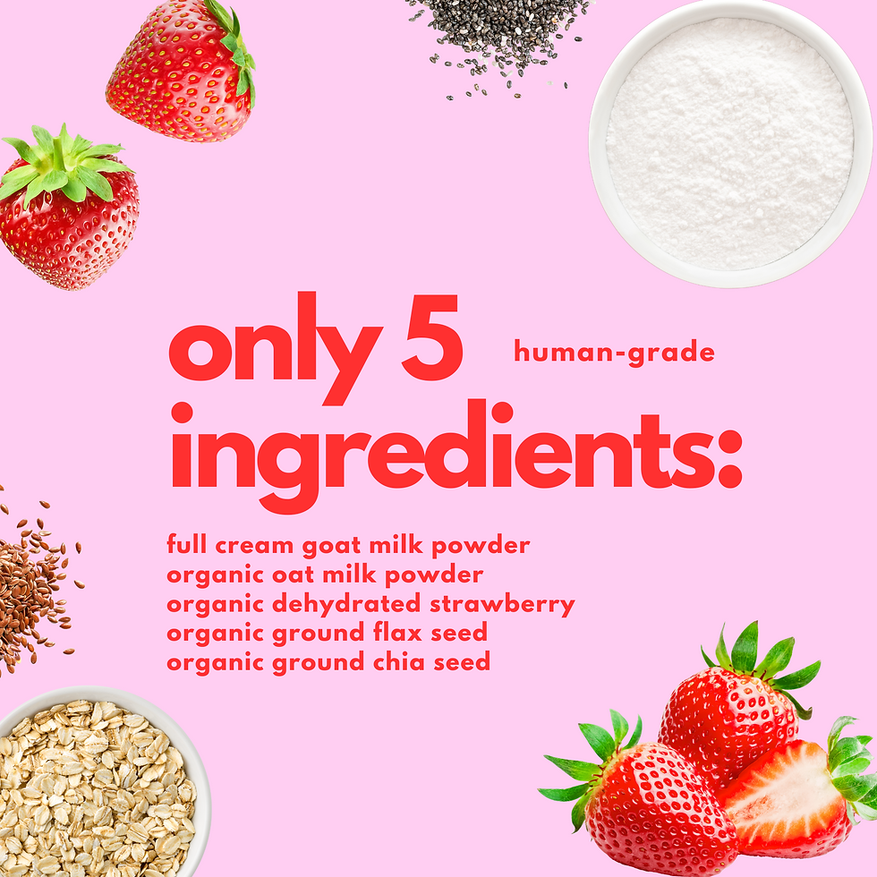 We use full-cream goat’s milk powder that’s non-GMO, hormone and antibiotic-free.